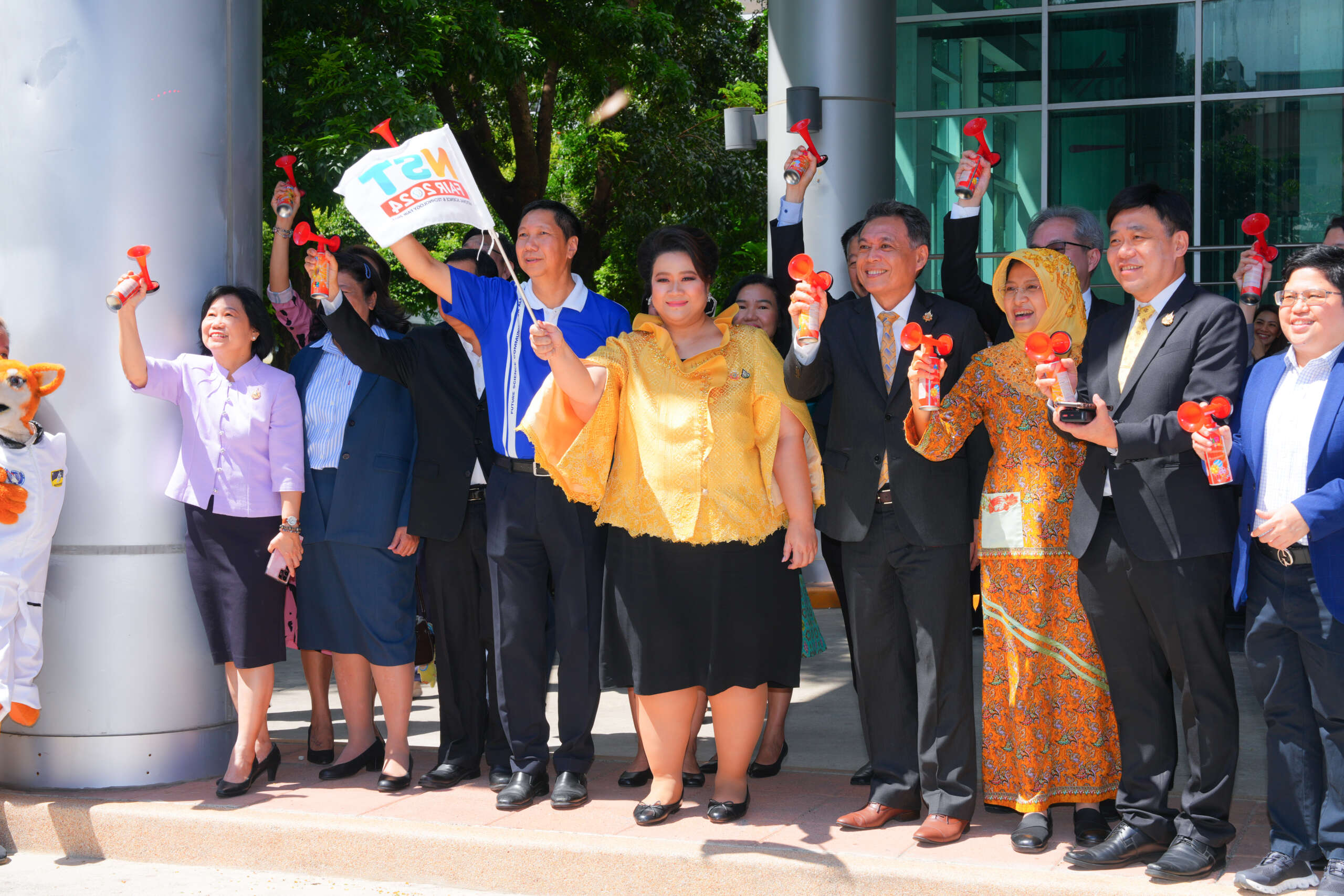 จากนั้นนางสาวศุภมาสและนายเพิ่มสุขและผู้บริหารกระทรวง อว.ได้ร่วมกันปล่อยขบวนคาราวาน “สุข สนุก วิทย์” ขณะที่ผศ.ดร.รวิน ระวิวงศ์ ผอ.NSM ซึ่งเป็นหน่วยงานหลักในการจัดงานมหกรรมวิทยาศาสตร์ฯ กล่าวว่า งานมหกรรมวิทยาศาสตร์และเทคโนโลยีแห่งชาติ ประจำปี 2567 มีหน่วยงานร่วมจัดกว่า 100 หน่วยงานแบ่งเป็นหน่วยงานทั้งของกระทรวง อว. ภาครัฐ ภาคเอกชน สมาคม พิพิธภัณฑ์ฯลฯ จำนวน 69 หน่วยงานและหน่วยงานต่างประเทศ 35 หน่วยงานจาก 9 ประเทศทั้งฝรั่งเศส ญี่ปุ่น จีน สวีเดน สาธารณรัฐเกาหลี เป็นต้น ดังนั้น งานจึงมีความยิ่งใหญ่และหลากหลาย โดยนิทรรศการหลัก ประกอบด้วยนิทรรศการเทิดพระเกียรติสถาบันพระมหากษัตริย์และพระบรมวงศานุวงศ์ที่ทรงมีคุณูปการต่องานด้านวิทยาศาสตร์ เทคโนโลยีและการศึกษาของประเทศไทย นิทรรศการเทิดพระเกียรติ “พระราชบิดาแห่งวิทยาศาสตร์ไทย” พระบาทสมเด็จพระปรเมนทรรามาธิบดี ศรีสินทรมหามงกุฏ พระจอมเกล้าเจ้าอยู่หัว พระสยามเทวมหามกุฏวิทยมหาราช นิทรรศการเทิดพระเกียรติพระบาทสมเด็จพระรามาธิบดีศรีสินทรมหาวชิราวุธ พระมงกุฏเกล้าเจ้าอยู่หัวและพระราชกรณียกิจด้านการพัฒนาการศึกษาไทยตั้งแต่ระดับประถมจนอุดมศึกษา การสถาปนาจุฬาลงกรณ์มหาวิทยาลัยเป็นมหาวิทยาลัยแห่งแรกของประเทศไทย นิทรรศการเทิดพระเกียรติสมเด็จพระมหิตลาธิเบศร อดุลยเดชวิกรม พระบรมราชชนก ในพระมหากรุณาธิคุณด้านการอุดมศึกษาไทย ดังพระราชสมัญญานาม “พระบิดาแห่งการอุดมศึกษาไทย” นิทรรศการเทิดพระเกียรติพระบาทสมเด็จพระบรมชนกาธิเบศร มหาภูมิพลอดุลยเดชมหาราชบรมนาถบพิตร “พระบิดาแห่งเทคโนโลยีของไทย” และ “พระบิดาแห่งนวัตกรรมไทย” นิทรรศการเทิดพระเกียรติพระบาทสมเด็จพระเจ้าอยู่หัว นิทรรศการเทิดพระเกียรติสมเด็จพระบรมชนนีพันปีหลวง นิทรรศการเทิดพระเกียรติสมเด็จพระกนิษฐาธิราชเจ้า กรมสมเด็จพระเทพรัตนราชสุดาฯ สยามบรมราชกุมารี นิทรรศการเทิดพระเกียรติสมเด็จเจ้าฟ้าฯ กรมพระศรีสวางควัฒน วรขัตติยราชนารี