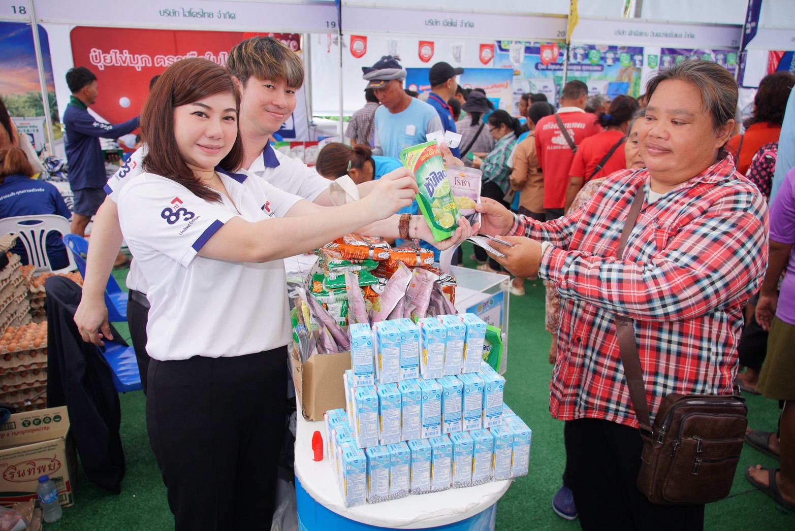 ภายในงานมีการจำหน่ายปุ๋ยเคมีราคาพิเศษ ซึ่งลดราคาสูงสุดกระสอบละ 200 บาท โดยเกษตรกรสามารถซื้อได้ไม่เกิน 5 กระสอบต่อราย ครอบคลุมปุ๋ย 6 สูตรหลักที่ใช้กันอย่างแพร่หลาย ได้แก่ 46-0-0, 16-20-0 , 15-15-15, 18-8-8, 16-8-8 และ 30-0-0 นอกจากนี้ยังมีการจำหน่ายยาฆ่าแมลงและยาปราบศัตรูพืชในราคาพิเศษ และมอบคูปองส่วนลด 50 บาทสำหรับซื้อเคมีเกษตรภายในงานอีกด้วย