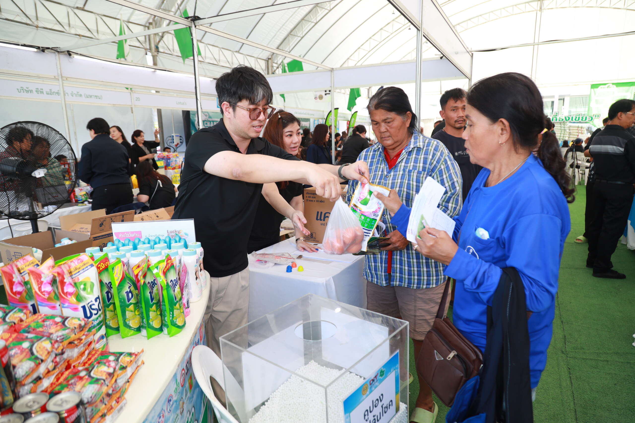 ภายในงานมีการจำหน่ายปุ๋ยเคมี 6 สูตรยอดนิยม ที่ใช้ในพืชเศรษฐกิจหลักของจังหวัด เช่น ข้าวและอ้อย ได้แก่ 46-0-0, 16-20-0, 15-15-15, 16-8-8, 18-8-8, และ 30-0-0 มาพร้อมส่วนลดพิเศษสูงสุดถึง 200 บาทต่อกระสอบ (จำกัดสิทธิ์คนละ 5 กระสอบ) สิทธิพิเศษนี้สำหรับเกษตรกรตัวจริงนำสมุดทะเบียนเกษตรกร (สมุดเล่มเขียว) และบัตรประจำตัวประชาชนตัวจริง มาแสดงเพื่อยืนยันตัวตน ก็สามารถรับสิทธิ์ซื้อสินค้าราคาพิเศษได้ทันที พร้อมรับคูปองส่วนลดเพิ่มอีก 50 บาท สำหรับซื้อยาฆ่าแมลงและยาปราบศัตรูพืช