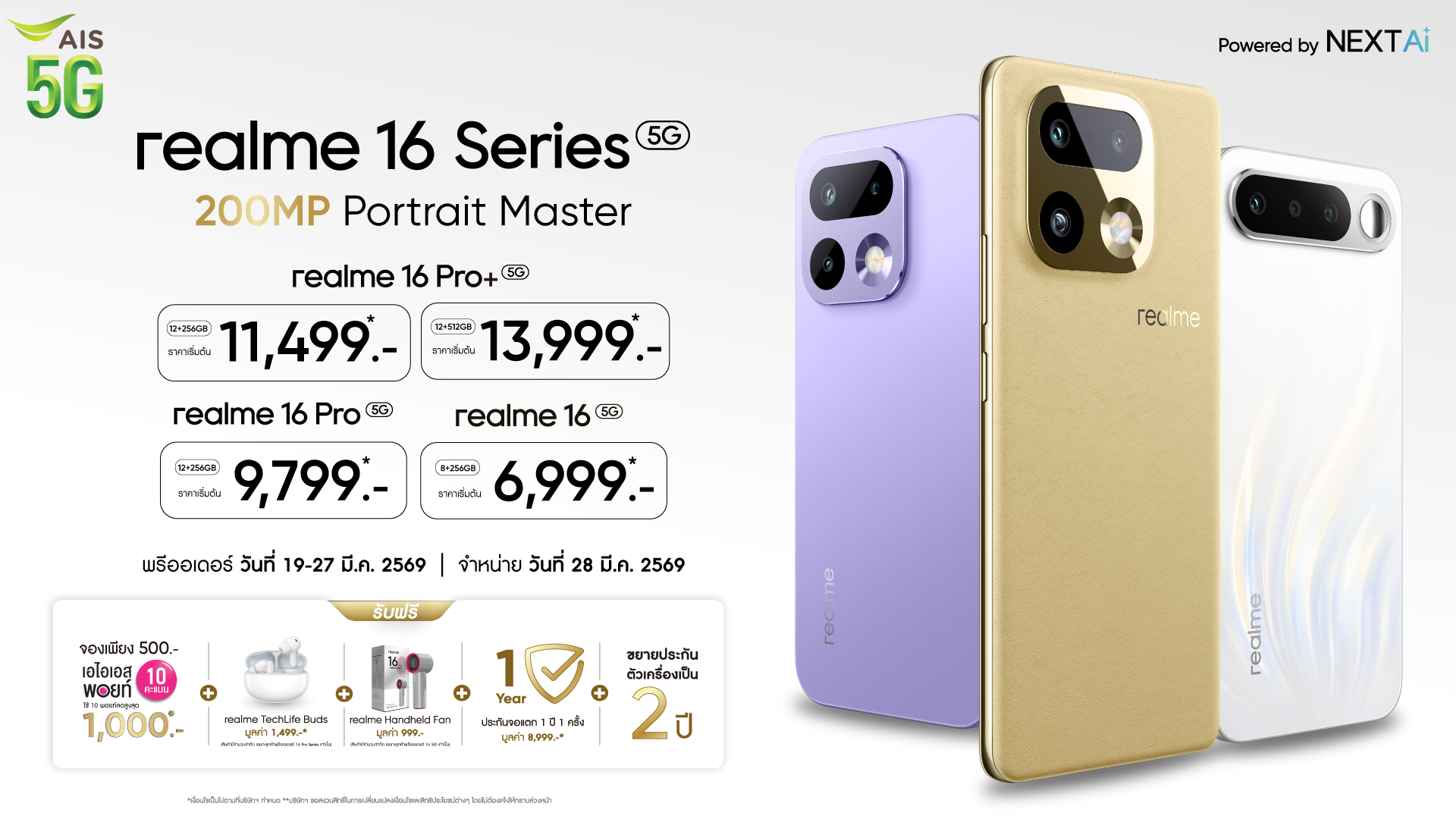 •realme 16 Pro 5G ความจุ 12/256GB ราคาเริ่มต้น 9,799 บาท