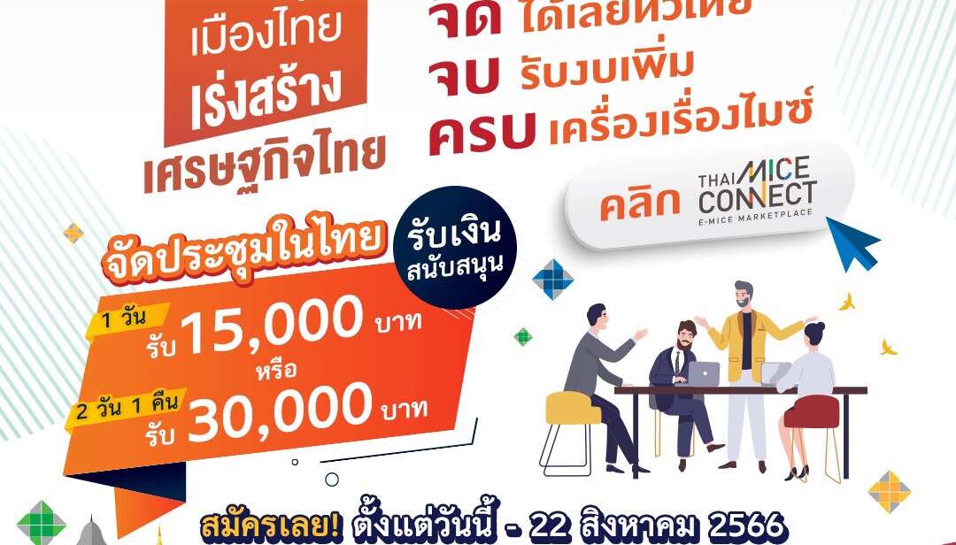 ทีเส็บ ชวนผู้ประกอบการไมซ์ เข้าร่วม ‘โครงการประชุมเมืองไทย เร่งสร้างเศรษฐกิจไทย’ “จอย-จัด-จบ-ครบ” รับงบสนับสนุน จัดประชุมไมซ์ทั่วไทย